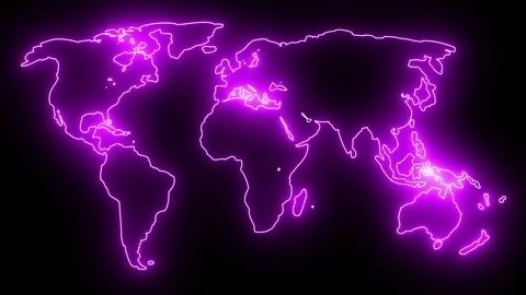 Neon World Map Outline. Futuristic anima | Stock Video | Pond5